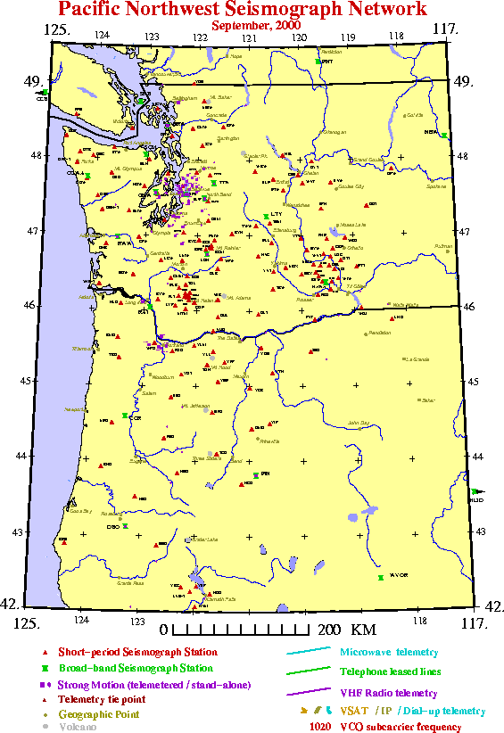 Figure 1. Seismograph stations operated by or recorded at the PNSN at the end