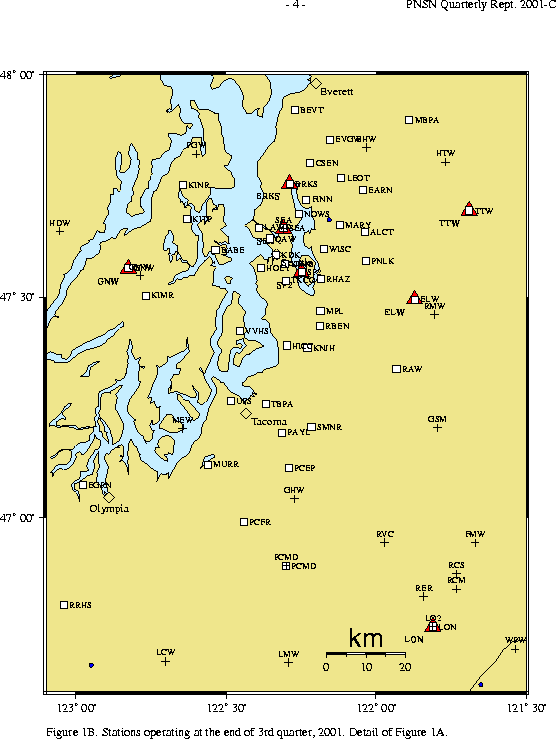 PNSN Puget Sound Seismometer sites; September, 2001