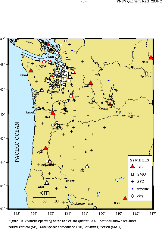 Figure 1. Seismograph stations operated by or recorded at the PNSN at the end