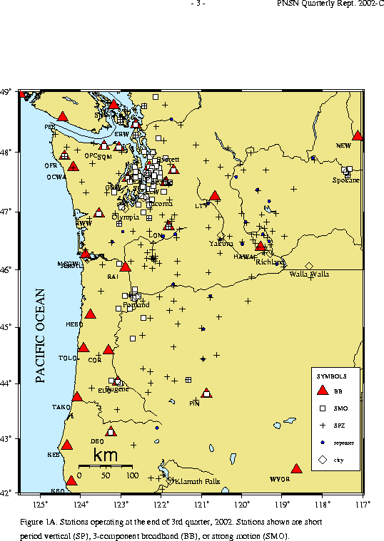 Figure 1. Seismograph stations operated by or recorded at the PNSN at the end