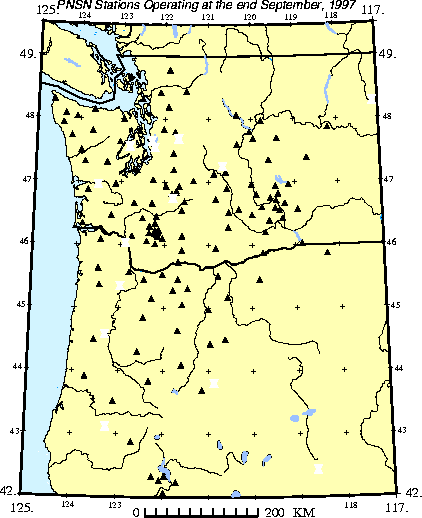 PNSN Seismometer sites; September, 1997