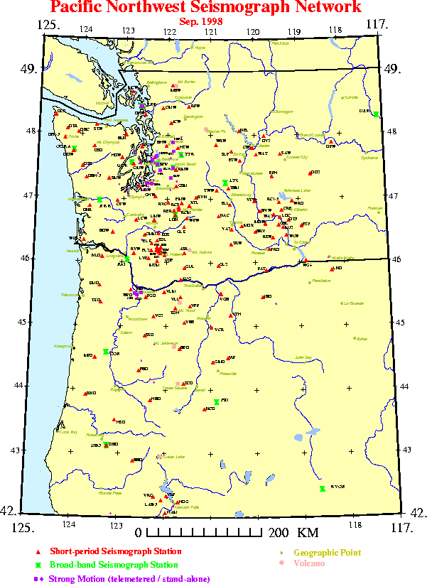 Figure 1. Seismograph stations operated by or recorded at the PNSN at the end
